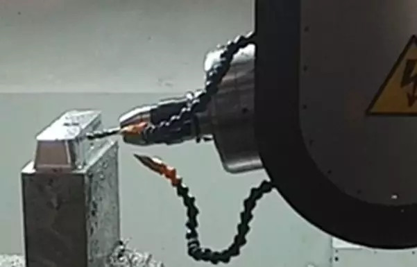 在五轴加工中你是否遇到过这样的情况,当使用钻头正在空间倾斜平面上钻孔的时候,刀具突然意外卡住?此时,如果你使用的是摇篮式五轴机床,可以先将程序复位,然后再切换到手动操作方式,选择机床控制面板上的轴选按钮“Z”,再按下正方向按键“+”;或者使用手轮,同样选择Z轴及适当的手轮增量,再小心地顺时针摇动手轮。陷入斜孔中的钻头就会沿着钻孔的轴线方向退出孔外。