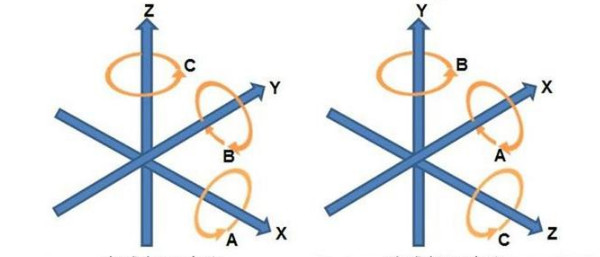 耳轴式机器以A轴(围绕X轴旋转)和C轴(围绕Z轴旋转)操作,而旋转式机器以B轴操作(围绕Y轴旋转)和C轴(围绕Z轴旋转)。耳轴式机器中的旋转轴通过工作台的移动来表示,而旋转式机器通过旋转主轴来表示它们的旋转轴。