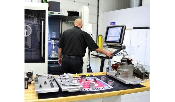 Unilock系统还提高了与Charlie Mitchell先生的两台主要铣床的协调效率。例如,他的三轴CMX 1100 V上有一个20 in×40 in的大铝板。在工作台的一端用螺栓固定一对标准虎钳,另一端是一个Unilock双接收器。因此,Charlie Mitchell先生可以迅速建立精加工操作或工作,且不需要消耗五轴主轴的时间。托盘的使用使Mitchell先生有时间进行多任务处理,以便更快地周转。“我可以在一周内编写、设置和运行5个不同的多操作作业,而且我们讨论的是公差极其严格的复杂部件。”他说。