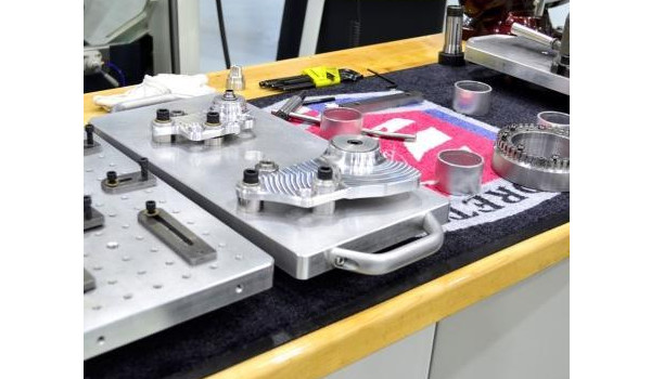 当最近的规则改变允许团队更自由地修改前摇杆和后摇杆时,附加的适应性就随之而来了。使用常规老虎钳,需要5次操作才能完成团队设计的8 in×6.5 in×1.5 in的摇杆部分。相反,他在Unilock托盘上设置了三个不同的虎钳,并能够在他的立式磨机上进行所有的五项操作。如果他做了一个个的单独操作,Mitchell先生估计他需要一周的时间才能完成其中的10个零部件(图4)。