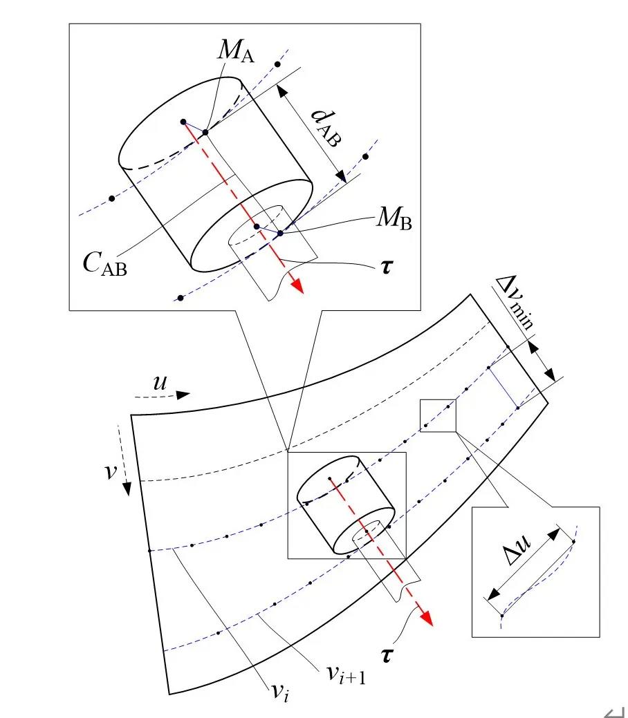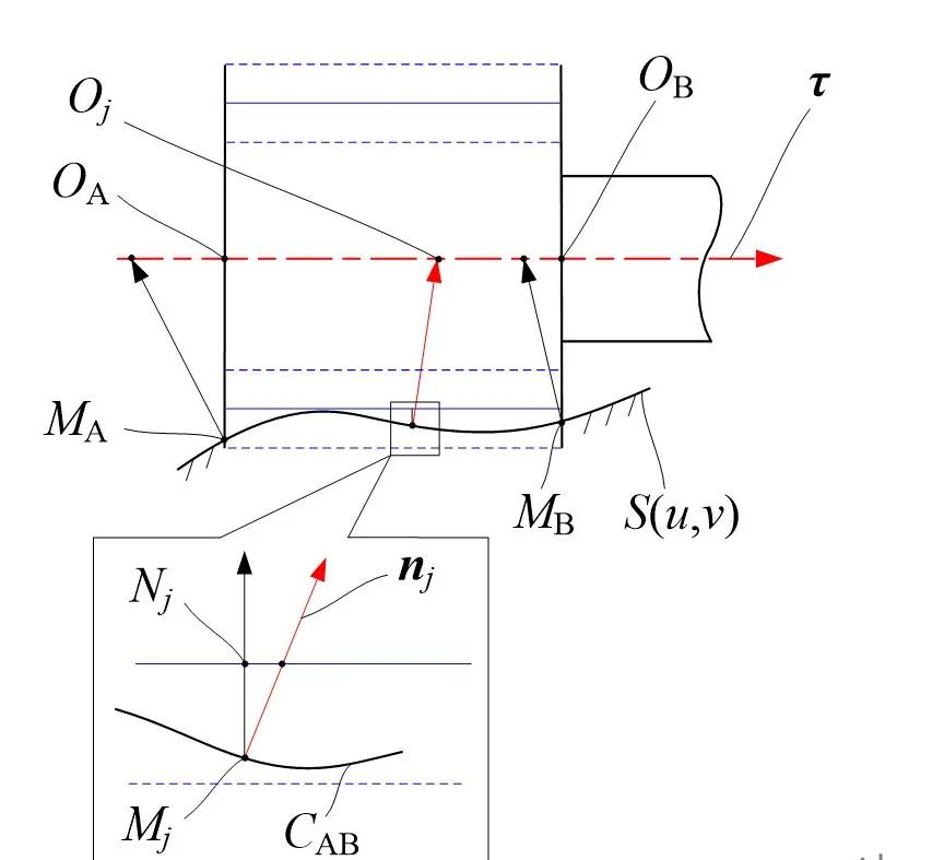 整体叶盘是新一代航空发动机的核心部件之一,其整体结构的应用提高了发动机的耐久性与可靠性。随着我国大力发展航空事业,实现整体叶盘等复杂曲面类零件的自动化数控抛光成为制造业研究的重要课题。而路径规划是数控抛光的核心技术之一,其主要研究如何精确控制抛光工具高效而无遗漏地覆盖待加工区域,并且优化调整抛光与工件之间的相对位置关系实现稳定抛光。作为抛光轮的一种,砂布轮受挤压的程度用压缩变形量来表征,不同的压缩量直接影响着材料的去除量。然而,叶片型面属于自由曲面,其相邻点处的曲率方向和大小都在变化,致使与砂布轮接触区域上压缩量极不均匀。而且,不同的刀轴矢量方向更是影响接触区域的压缩量分布情况,最终影响抛光精度和有效宽度。所以,如何在进行路径规划对复杂曲面的抛光质量有着显著的影响。