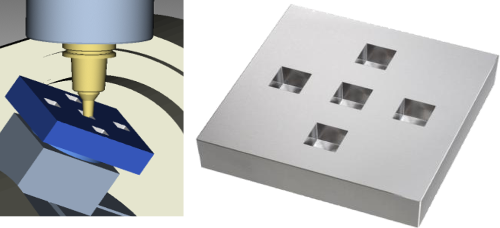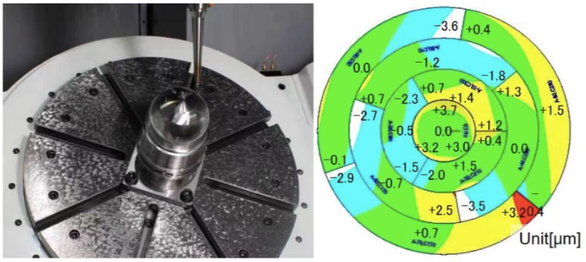 因环境和温度变化等导致的旋转中心变化,会影响五轴加工精度,应能通过探头自动进行校正,3轴/分度/5轴加工精度验证加工,接刀误差<±4μm。