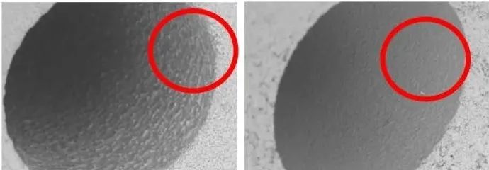 图左为电火花加工微孔,图右为飞秒激光加工微孔