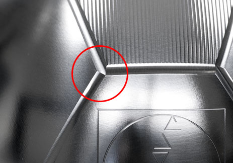 特别明显:虽然每个接缝加工时的刀具方向都必须改变,但接缝交点都非常准确,这是因为有高精度的海德汉直线光栅尺和角度编码器的结果。