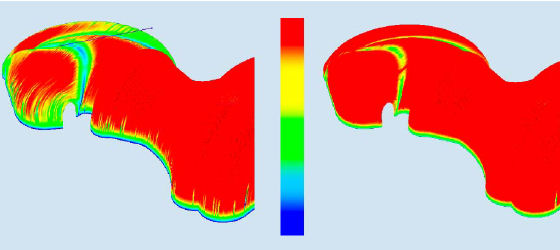 凭借优化的速度曲线,获得更快的加工速度。红色区域代表最大速度。
