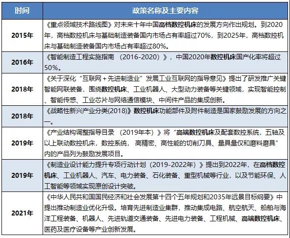 2015-2021中国高端数控机床主要国家政策汇总情况